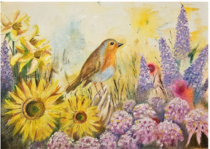 An ongoing body of work with fun pictures meshing loose art style with unique birds and abstract flowers. These are mixed media and will be available in various print sizes and coasters.